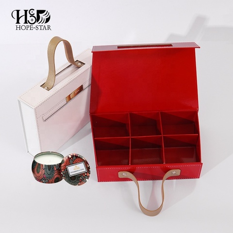 Eco Friendly Customized Red White Folding Box Kraft Candle Jar Packaging Foldable Box With Handle
